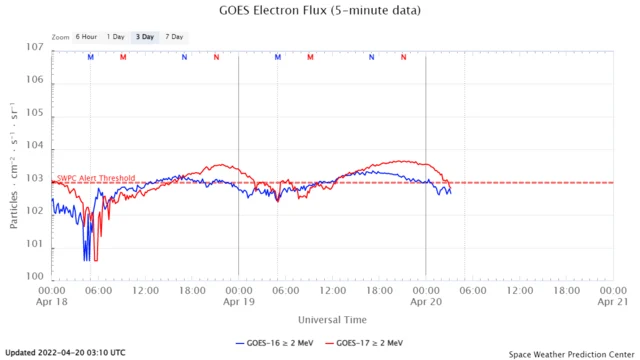 spaseweather.comのMクラスのフレア予測は75%のまま、Xクラスも25%のままです。引き続き、要警戒