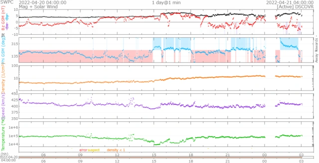 速度は少し下がり、現在410km/s前後で推移しています