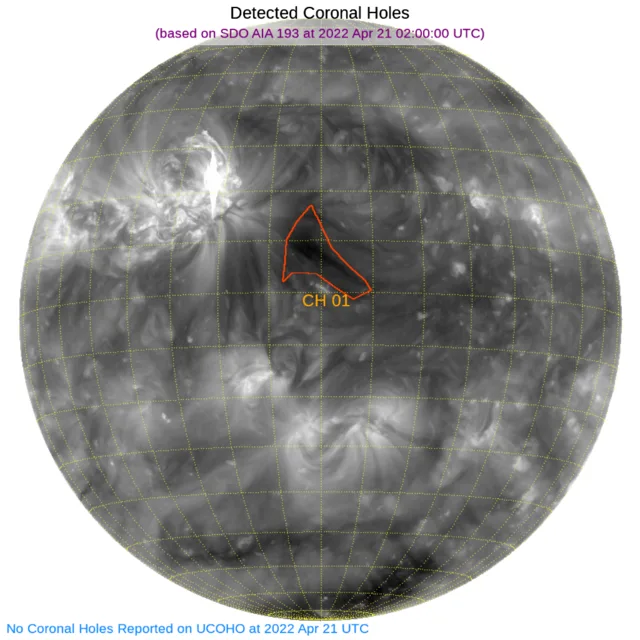 赤道やや北中心付近にコロナホールがあります