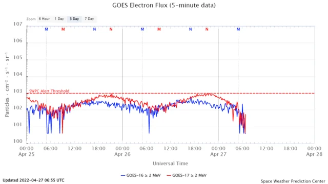 spaseweather.comのMクラスのフレア予測は40%のまま、Xクラスも10%のままです。