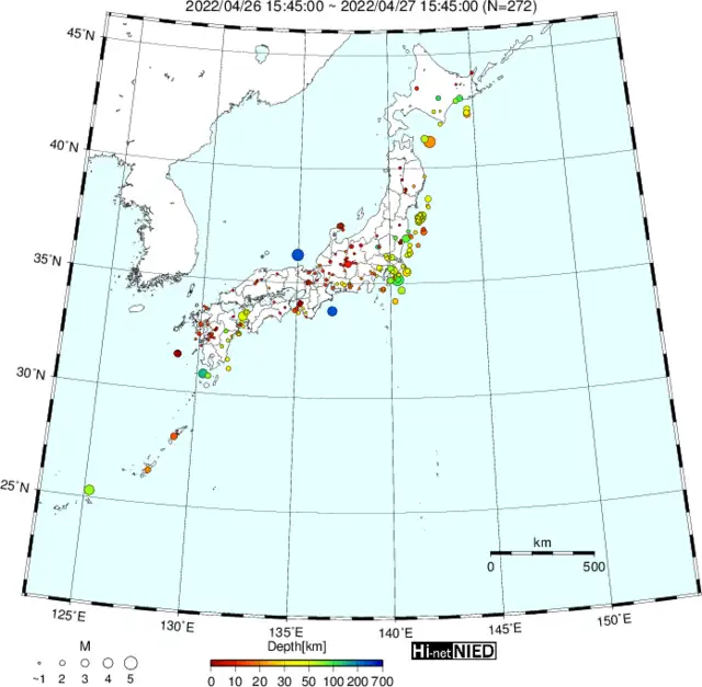 ●Hi-net日本地震分布と気象庁・・・hi-netの小笠原のデータは掲載日がずれて反映されるようです(翌々日に掲載)。掲載されないものもあるようなので気象庁の画像も付けます