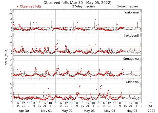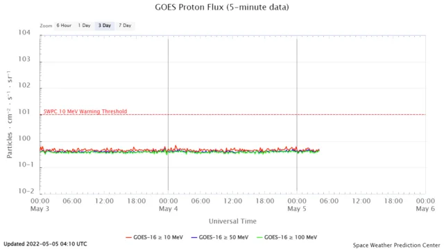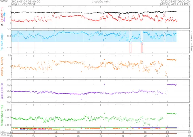 400km/s前後で推移していましたが12時頃から一段上がり、現在520km/s前後で推移しています