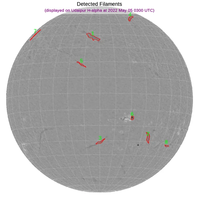 ※フィラメント:北の極付近、北半球寄り、南半球西より~西側にかけてたくさんのフィラメントがあります