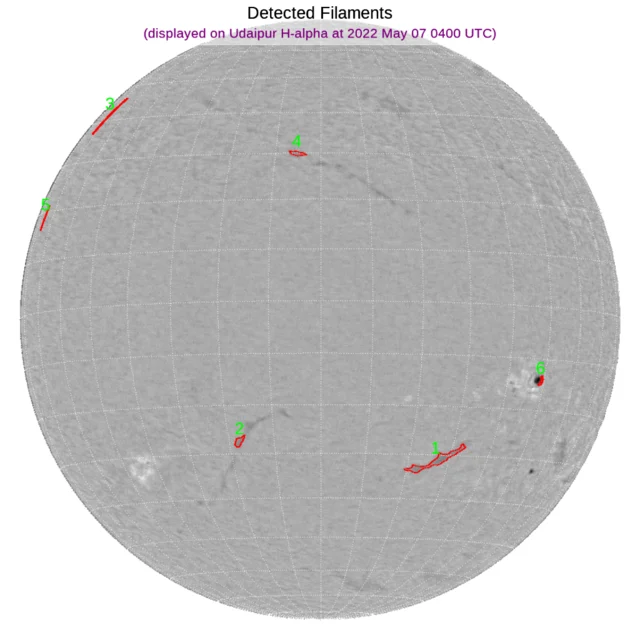 ※フィラメント:北半球(高緯度)中心付近、東端、南半球東側、西側、西端にフィラメントがあります