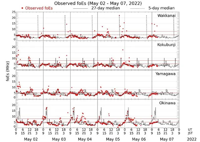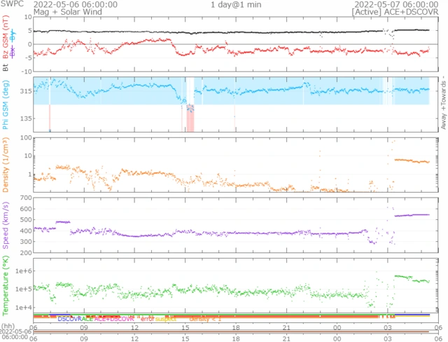 380km/s前後で推移していましたが12時過ぎから540km/s前後で推移しています