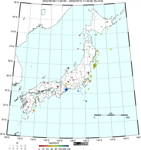 ●Hi-net日本地震分布と気象庁・・・hi-netの小笠原のデータは掲載日がずれて反映されるようです(翌々日に掲載)。掲載されないものもあるようなので気象庁の画像も付けます