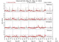 280km/s前後で推移していましたが22時頃から上がり、現在300km/s前後で推移しています