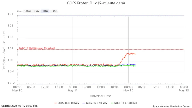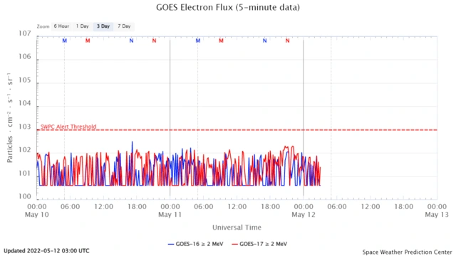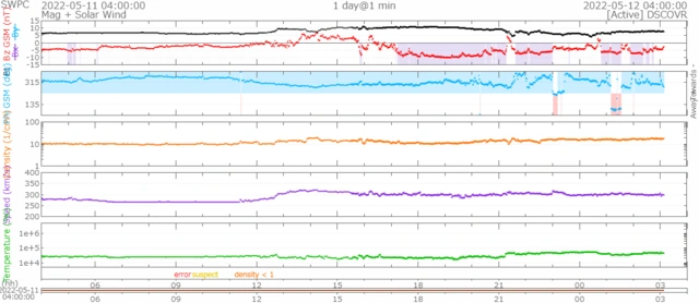 280km/s前後で推移していましたが22時頃から上がり、現在300km/s前後で推移しています