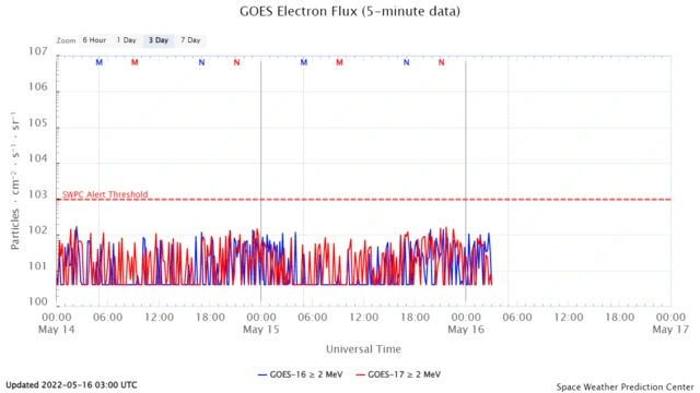 spaseweather.comのMクラスのフレア予測は35%のまま、Xクラスの予測も10%のままです