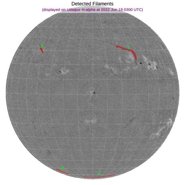 ※フィラメント:南の極付近、北半球東側、西側にフィラメントがあります