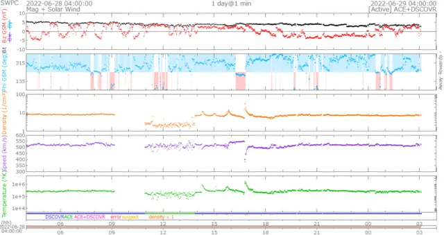 一時550km/s前後推移しました。現在は510km/s前後で推移しています