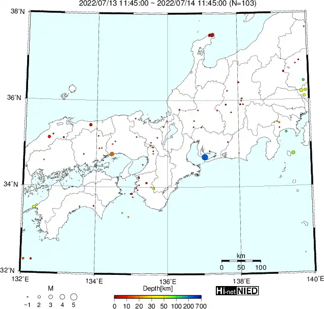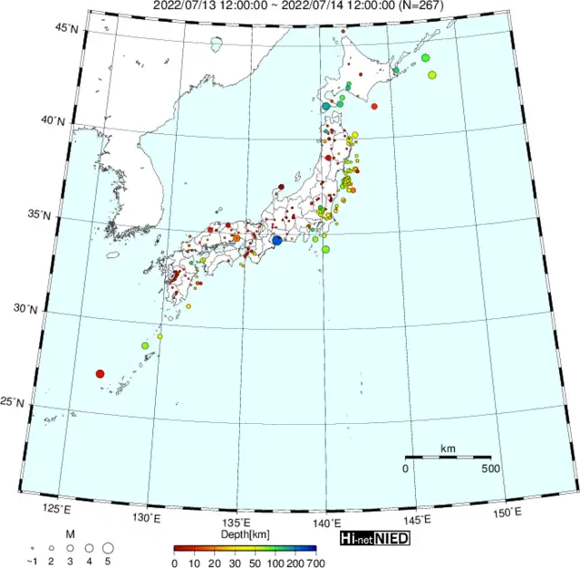 ●Hi-net日本地震分布と気象庁・・・hi-netの小笠原のデータは掲載日がずれて反映されるようです(翌々日に掲載)。掲載されないものもあるようなので気象庁の画像も付けます