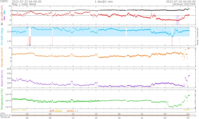 500km/s前後で推移していましたが徐々に下がり、一時420km/s前後まで下がりました。現在は520km/s前後で推移しています