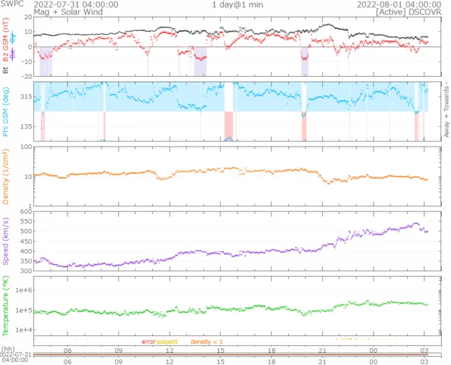 350km/s前後で推移していましたが徐々に上がり、現在510km/s前後で推移しています