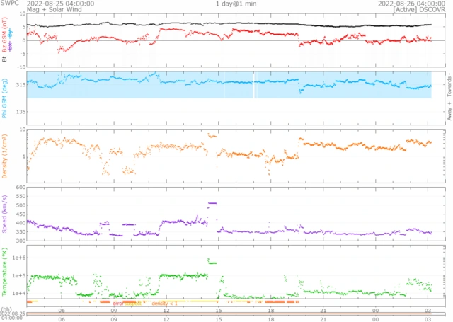 一時510km/s前後で推移した時間帯がありますが、340km/s前後で推移しています