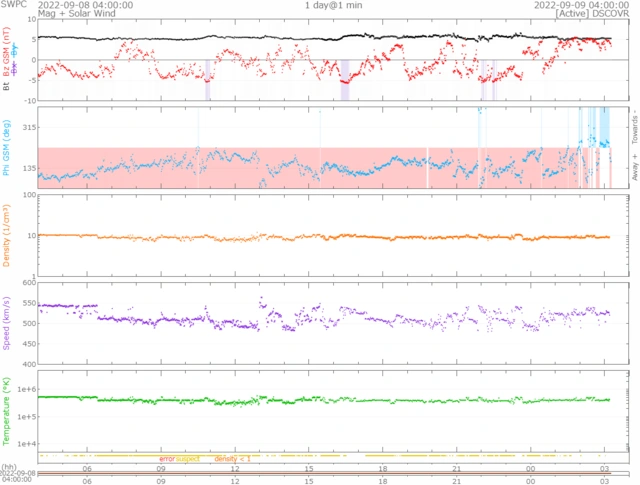 550km/s前後で推移していましたが少し下がり、現在490~520km/sで速度にバラツキがあります