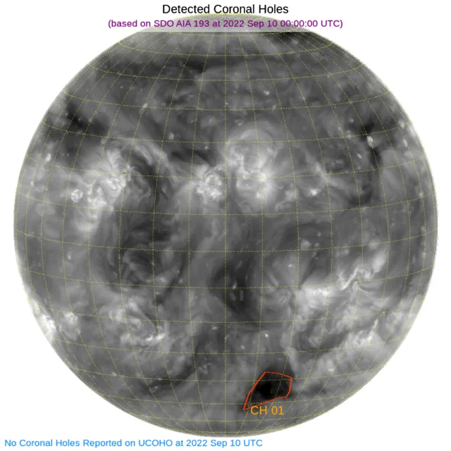 南の極の近くと北半球東端に小さなコロナホールがあります