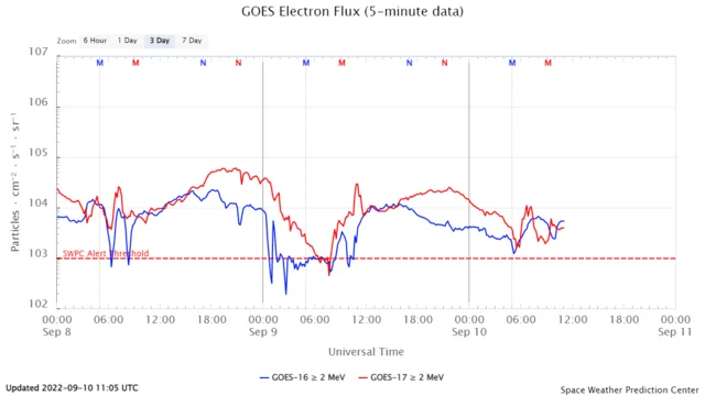 フレアは3010や3098、3099で発生しています。フレア予測は前日よりやや上昇傾向