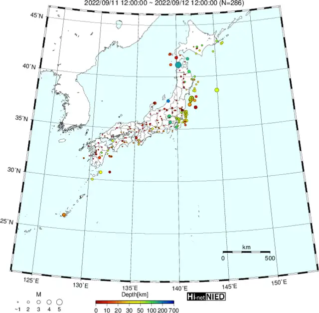 ●Hi-net日本地震分布と気象庁・・・hi-netの小笠原のデータは掲載日がずれて反映されるようです(翌々日に掲載)。掲載されないものもあるようなので気象庁の画像も付けます