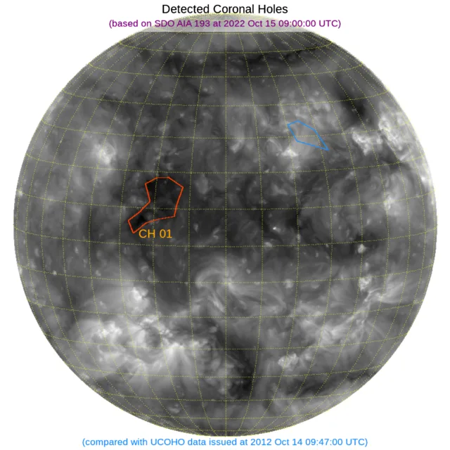 赤道付近東寄りにコロナホールがあります