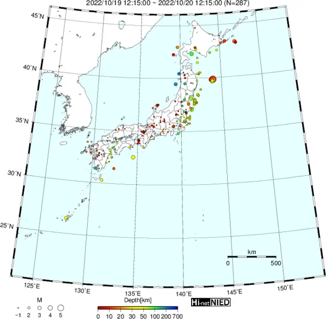 ●Hi-net日本地震分布と気象庁・・・hi-netの小笠原のデータは掲載日がずれて反映されるようです(翌々日に掲載)。掲載されないものもあるようなので気象庁の画像も付けます