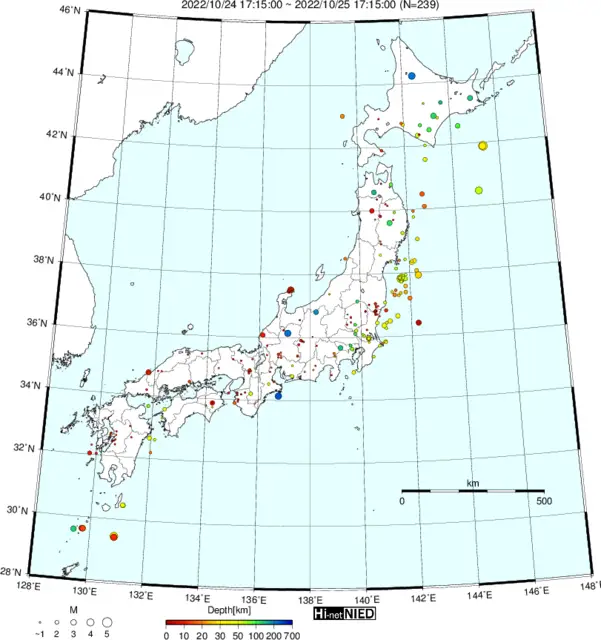 ●Hi-net日本地震分布と気象庁・・・hi-netの小笠原のデータは掲載日がずれて反映されるようです(翌々日に掲載)。掲載されないものもあるようなので気象庁の画像も付けます