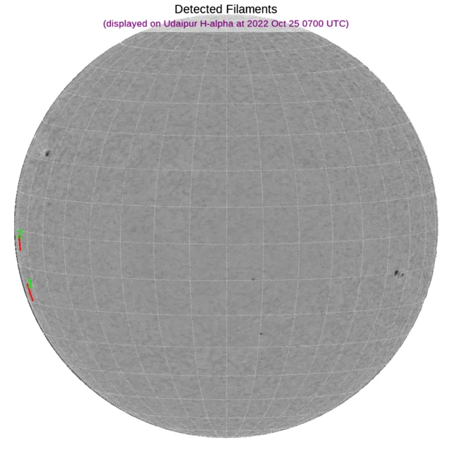赤道付近東側、北半球中心付近、南半球西端にフィラメントがあります