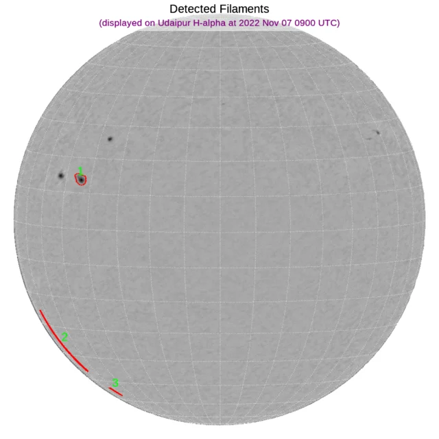 ※フィラメント:南半球東端と北半球東側にフィラメントがあります