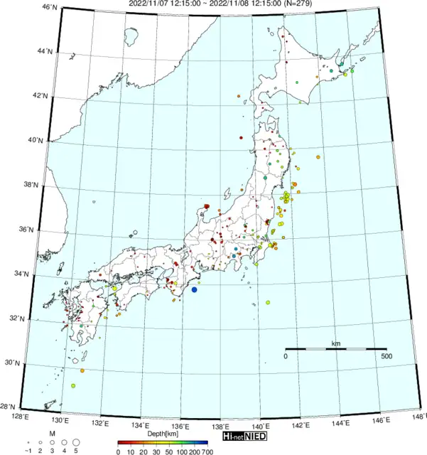 ●Hi-net日本地震分布と気象庁・・・hi-netの小笠原のデータは掲載日がずれて反映されるようです(翌々日に掲載)。掲載されないものもあるようなので気象庁の画像も付けます