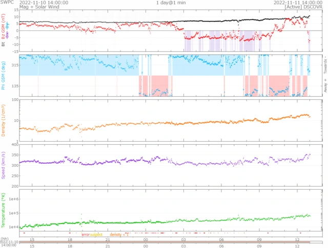 310km/s前後で推移していましたが少し上がり、現在350km/s前後で推移しています