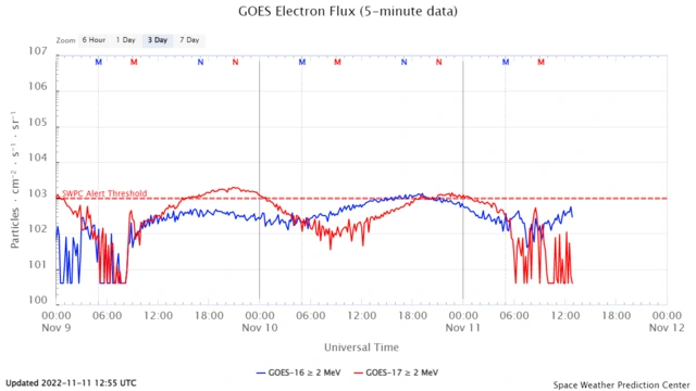 太陽フレアと黒点数(2022年11月11日更新)※中規模太陽フレア