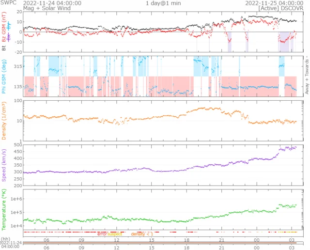 320km/s前後で推移していましたが徐々に上がり、現在480km/s前後で推移しています