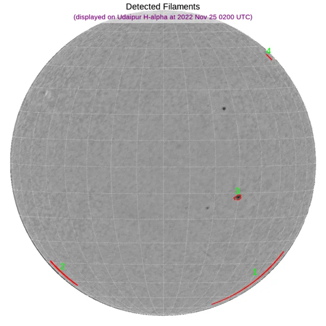 ※フィラメント:南の極近くの西端・東端、南半球西側、北半球西端にフィラメントがあります