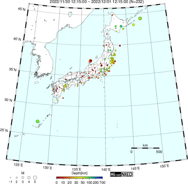 ●Hi-net日本地震分布と気象庁・・・hi-netの小笠原のデータは掲載日がずれて反映されるようです(翌々日に掲載)。掲載されないものもあるようなので気象庁の画像も付けます