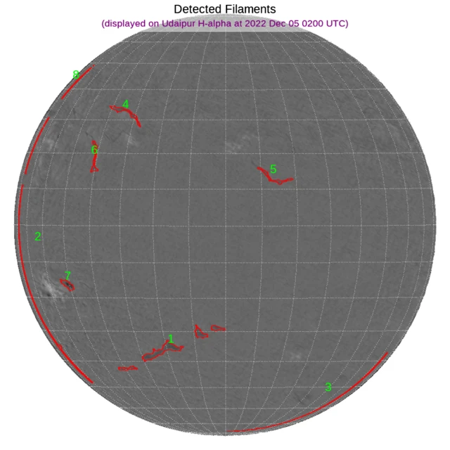 ※フィラメント:東側と北半球西寄り、南半球西端にフィラメントがあります