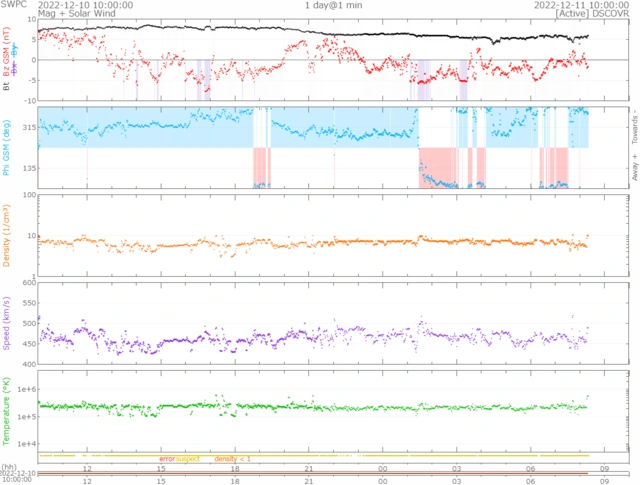 引き続き460km/s前後で推移していますが速度にバラツキがあります