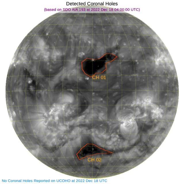 北半球中心付近、南半球中心付近にコロナホールがあります