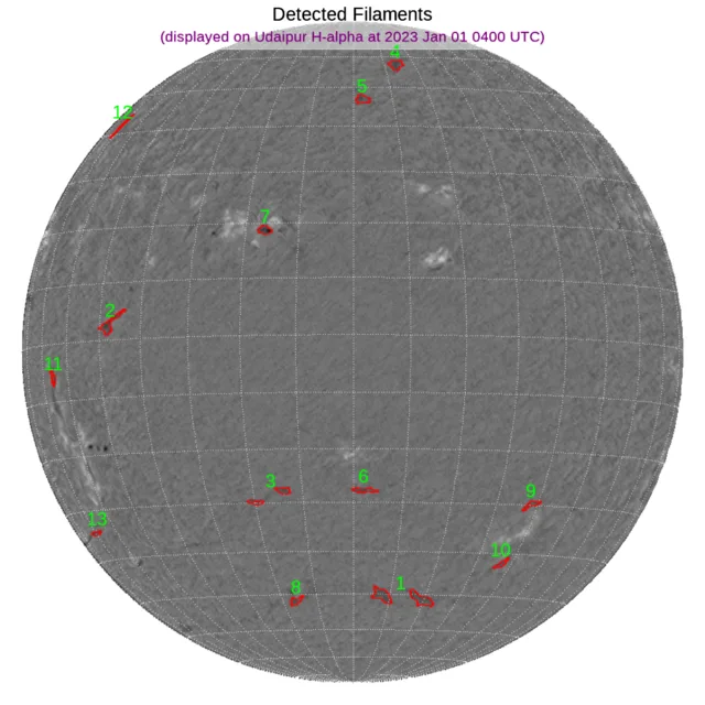 南半球(東側と西側)、北半球東側にフィラメントがあります
