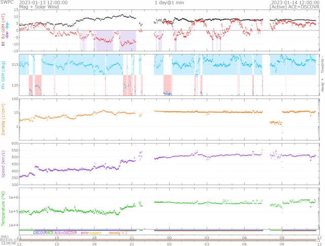 速度は少し下がり、現在510km/s前後で推移しています