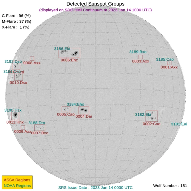 新しい黒点群が4つカウントされました。黒点数は181個です