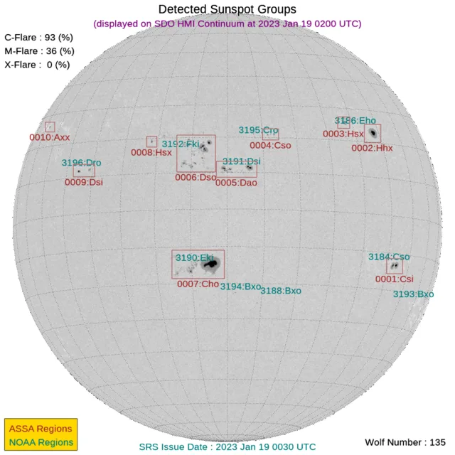 太陽フレアと黒点数(2023年01月19日更新)※CME到着予測あり