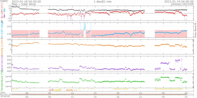 一時550km/s前後で推移した時間帯もありますが、速度は少し下がって430km/s前後で推移しています