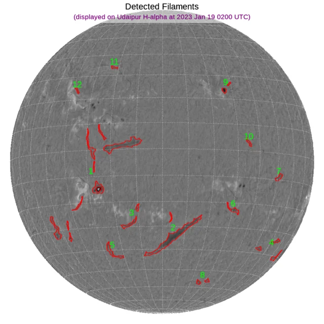 南半球(特に東側)を中心にあちこちにフィラメントがあります