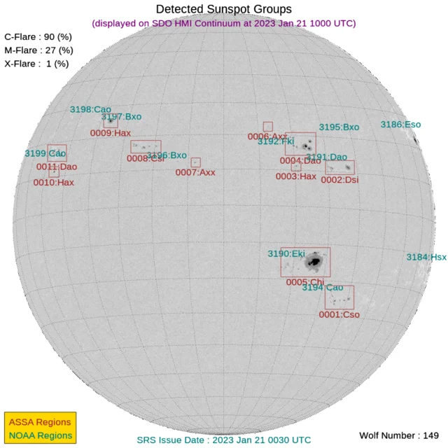 太陽フレアと黒点数(2023年01月21日更新)※CME到着予測あり