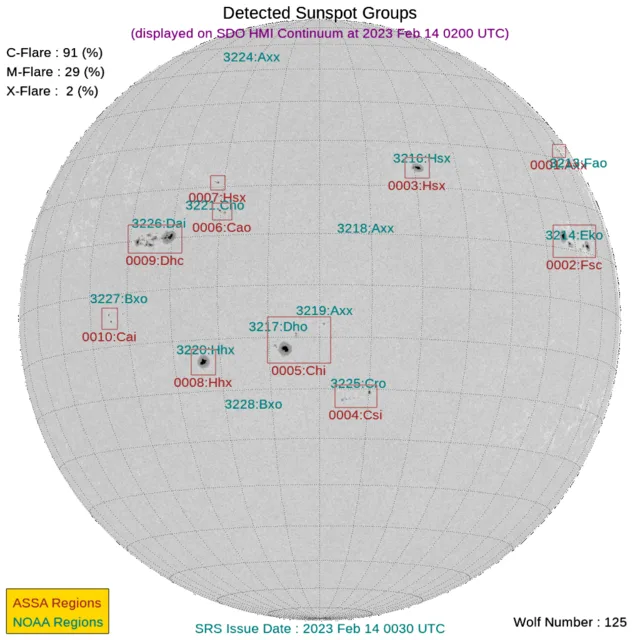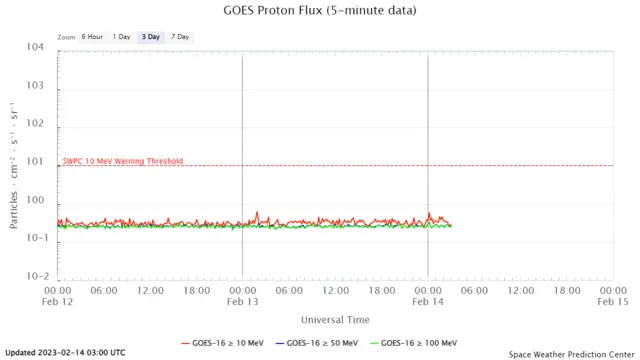 太陽フレアと黒点数(2023年02月14日更新)※中規模&CME到着予測あり