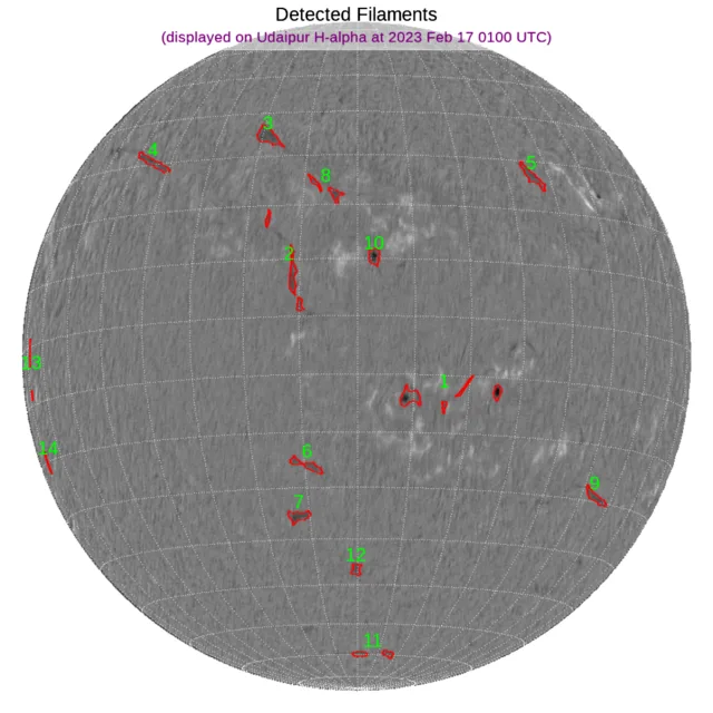 南半球中央付近、北半球、赤道付近東端にフィラメントがあります