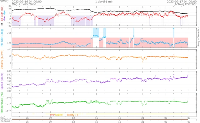 360km/s前後で推移していましたが徐々に上がり、現在520km/s前後で推移しています