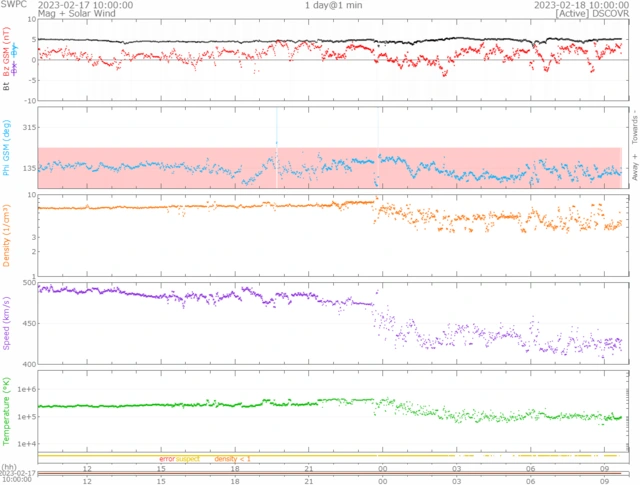 520km/s前後で推移していましたが徐々に下がり、現在420km/s前後で速度にバラつきがあります