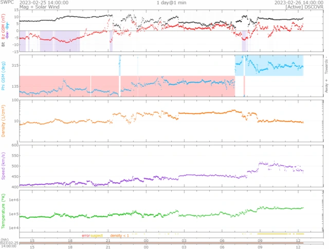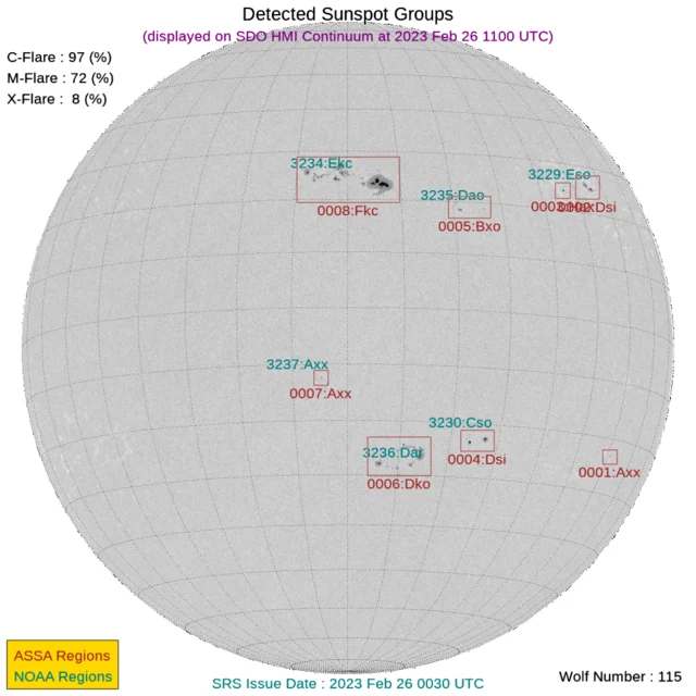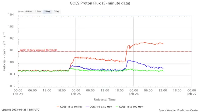 太陽フレアと黒点数(2023年02月26日更新)※中規模&CME到着予測あり