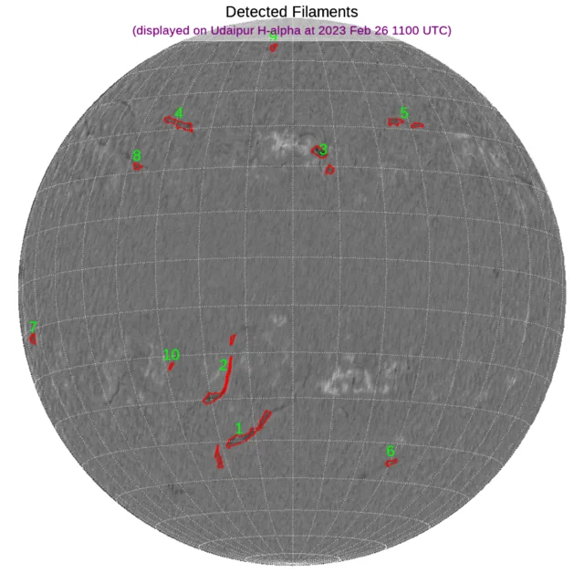 赤道付近と南の極以外の領域にフィラメントが散在しています